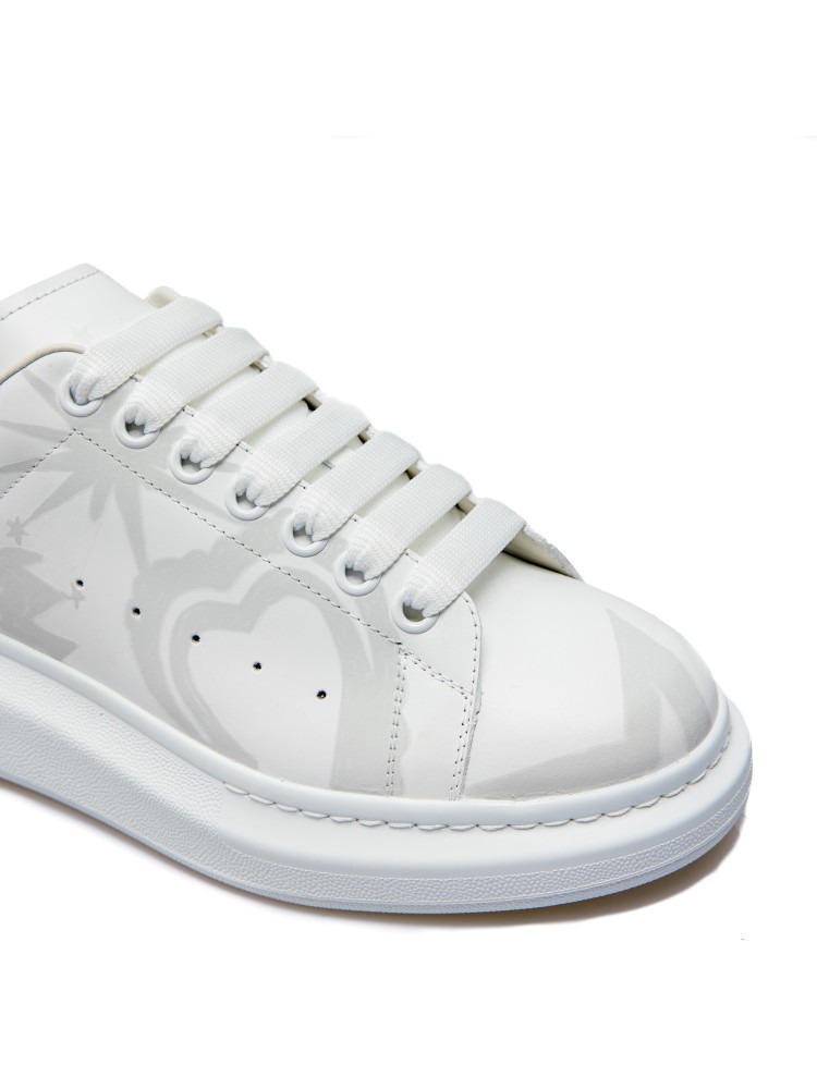 This Larry sport shoes from te brand Alexander McQueen is made out of calf leather. Featuring a round toe, flat lace fastening, neo print to the side, leather heel detail and a rubber sole with a small Alexander McQueen logo.