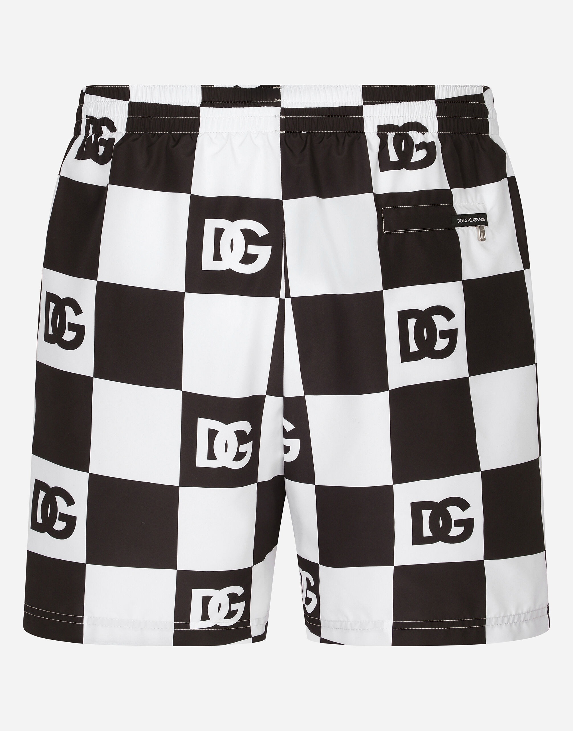 Damier-print mid-length swim trunks with DG logo