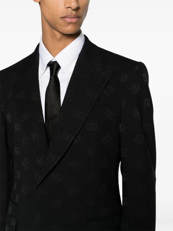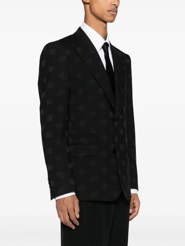 Dolce & Gabbana thêm điểm nhấn logomania vào phong cách may đo hoàn hảo của Ý với chiếc áo blazer đen này. Được cắt chính xác theo hình dáng một bên ngực, nó đóng vai trò chủ đạo cho vải jacquard DG, tạo ra vẻ ngoài đậm chất thương hiệu.