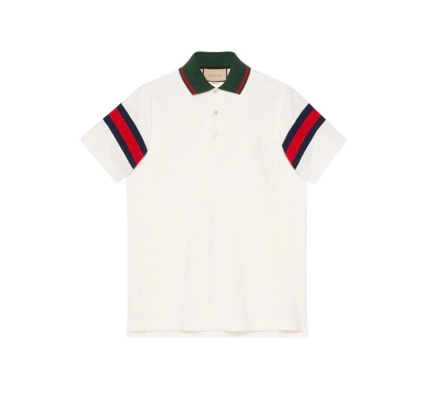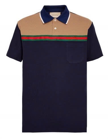 Gucci Web Collar Cotton Piquet Blue Polo
