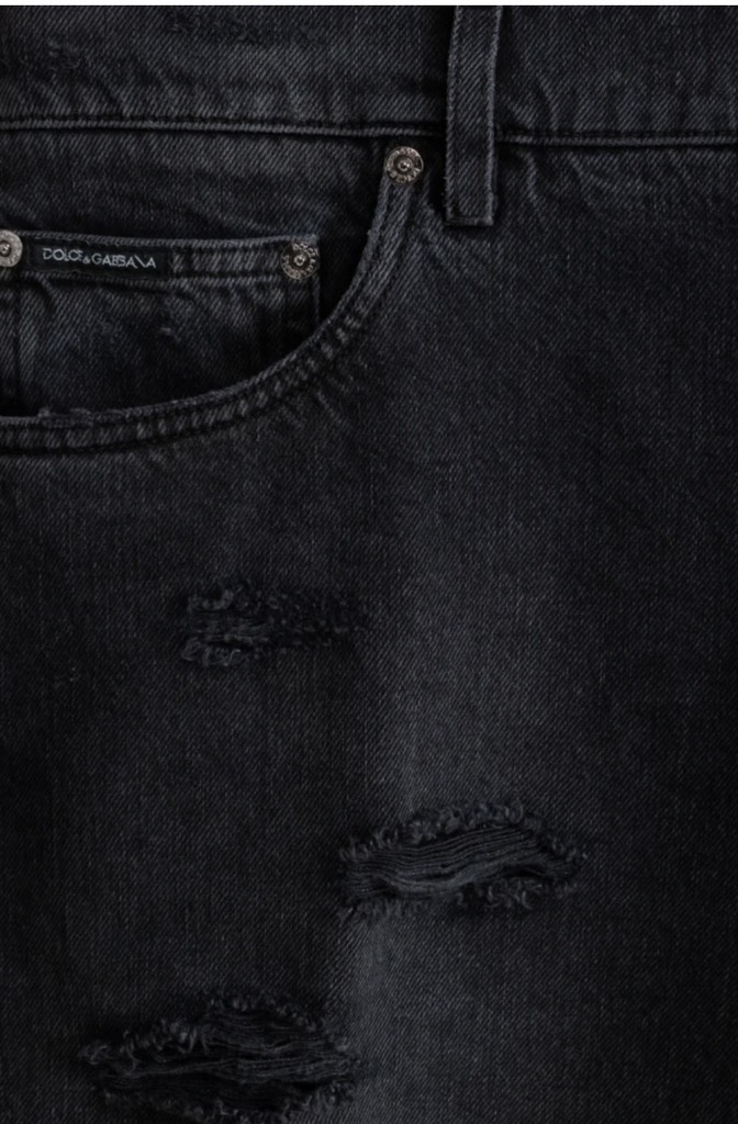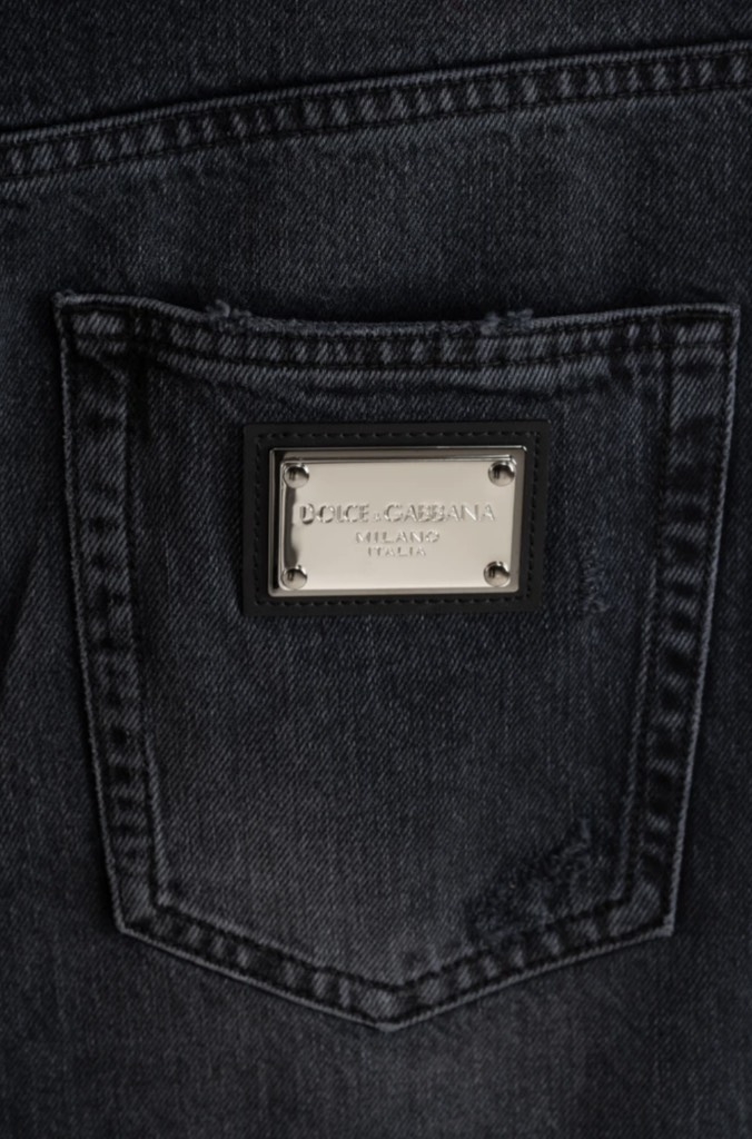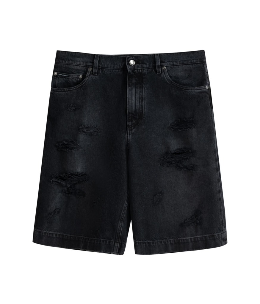 Quần short denim vừa vặn màu xám đậm của Dolce&Gabbana. Được làm từ chất liệu denim cotton dày dặn nhưng mềm mại. Mô hình đã được bổ sung với các đường viền sờn rách. Sản phẩm được trang trí bằng các phụ kiện có thương hiệu và miếng vá kim loại có thương hiệu ở túi sau.