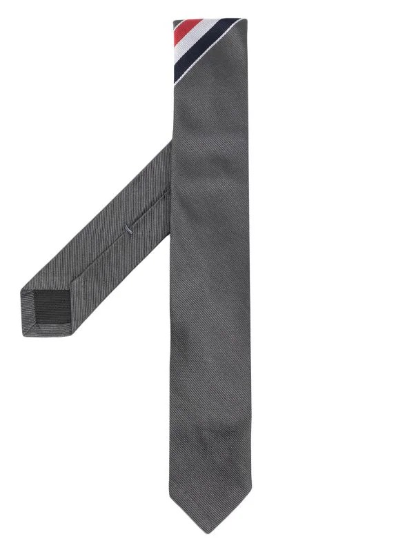 Các sọc RWB trên cà vạt lụa chéo màu xám đóng vai trò như một biểu tượng của Thom Browne.
