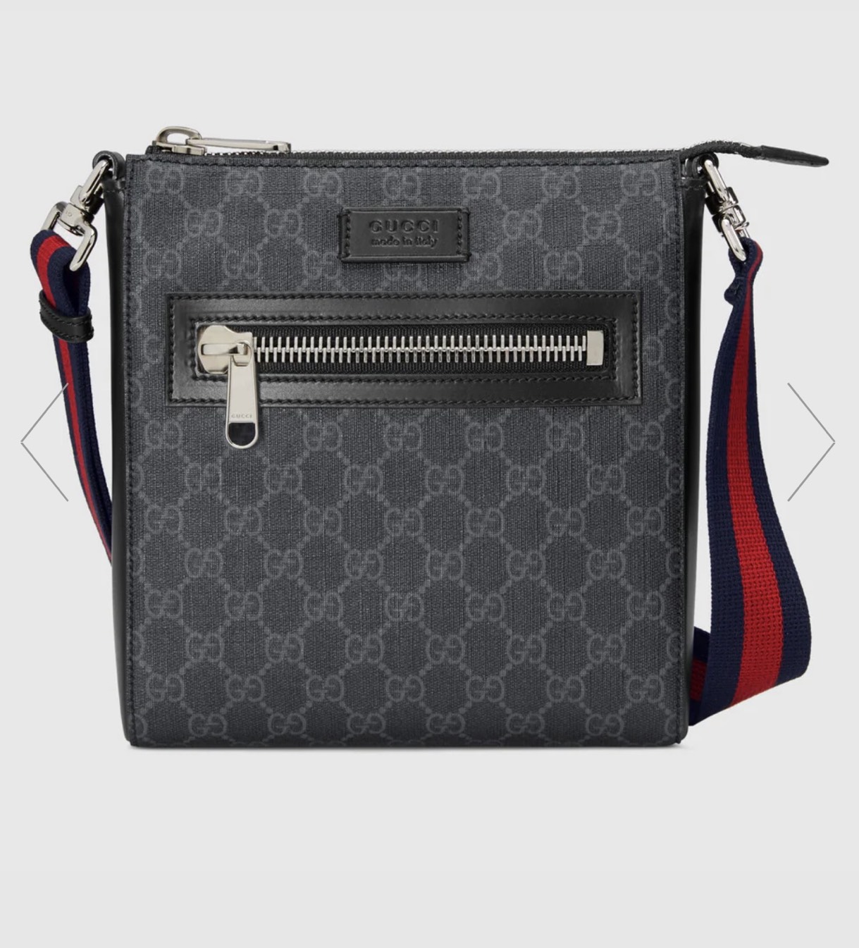 -Túi messenger bằng vải canvas giả da có họa tiết màu đen nổi bật với hoa văn logo màu xám.