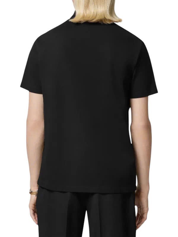 Điểm nổi bật tông màu đen/vàng dệt piqué Họa tiết đầu Medusa thêu logo trước ngực chi tiết sequin cổ áo polo túi nút phía trước tay áo ngắn viền thẳng